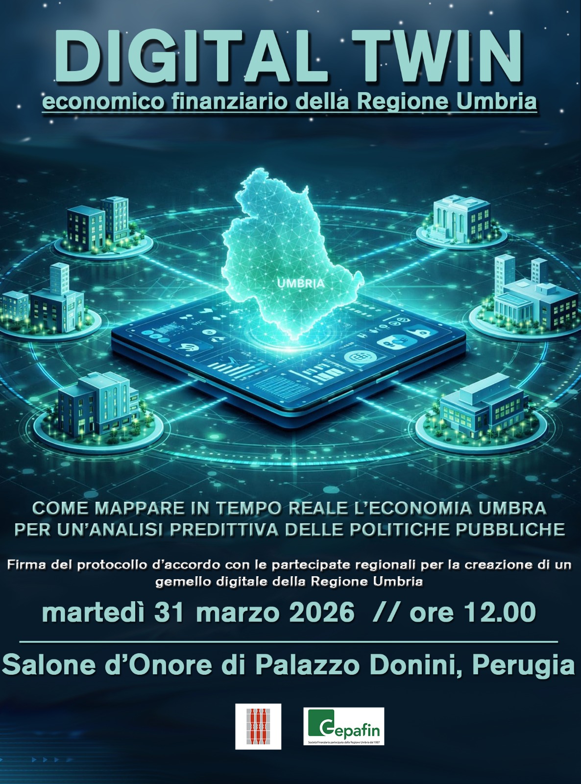PRESENTAZIONE PROGETTO”DIGITAL TWIN” – MARTEDI’ 31 MARZO 2026 ORE 12.00 – SALONE D’ONORE DI PALAZZO DONINI – PERUGIA